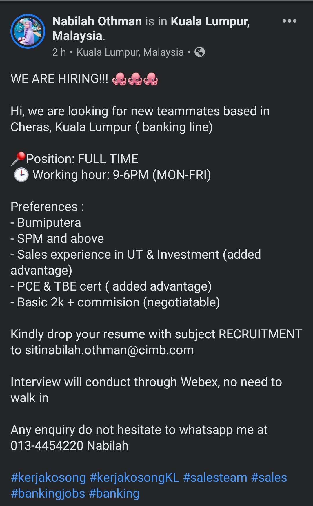 N O On Twitter Anyone Interested To Join C Mb Bank Kerjakosongkl Kerjakosong Job Recruitment Https T Co Uuuzoyolbv Twitter